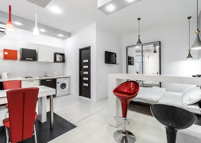Nestled in the Plosha Rynok district, the 50 m^2 Black And Red Squares Apartment Lviv is within 5 minutes' drive of such cultural places of interest as Dominican Cathedral.